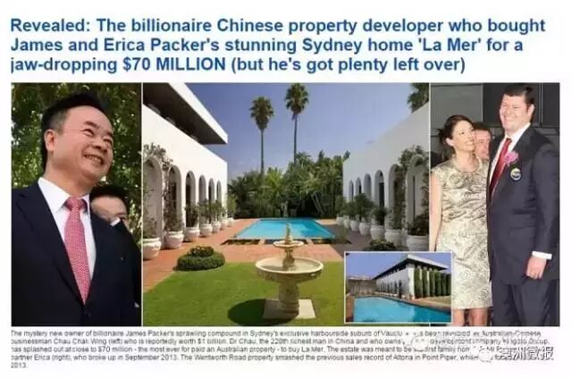 同年,华裔澳大利亚商人周泽荣(Chau Chak Wing)以7000万澳元的高价买下了赌场大亨帕克及其前妻位于悉尼的豪宅,直接创下澳洲历史上单套房屋最高成交价格纪录。